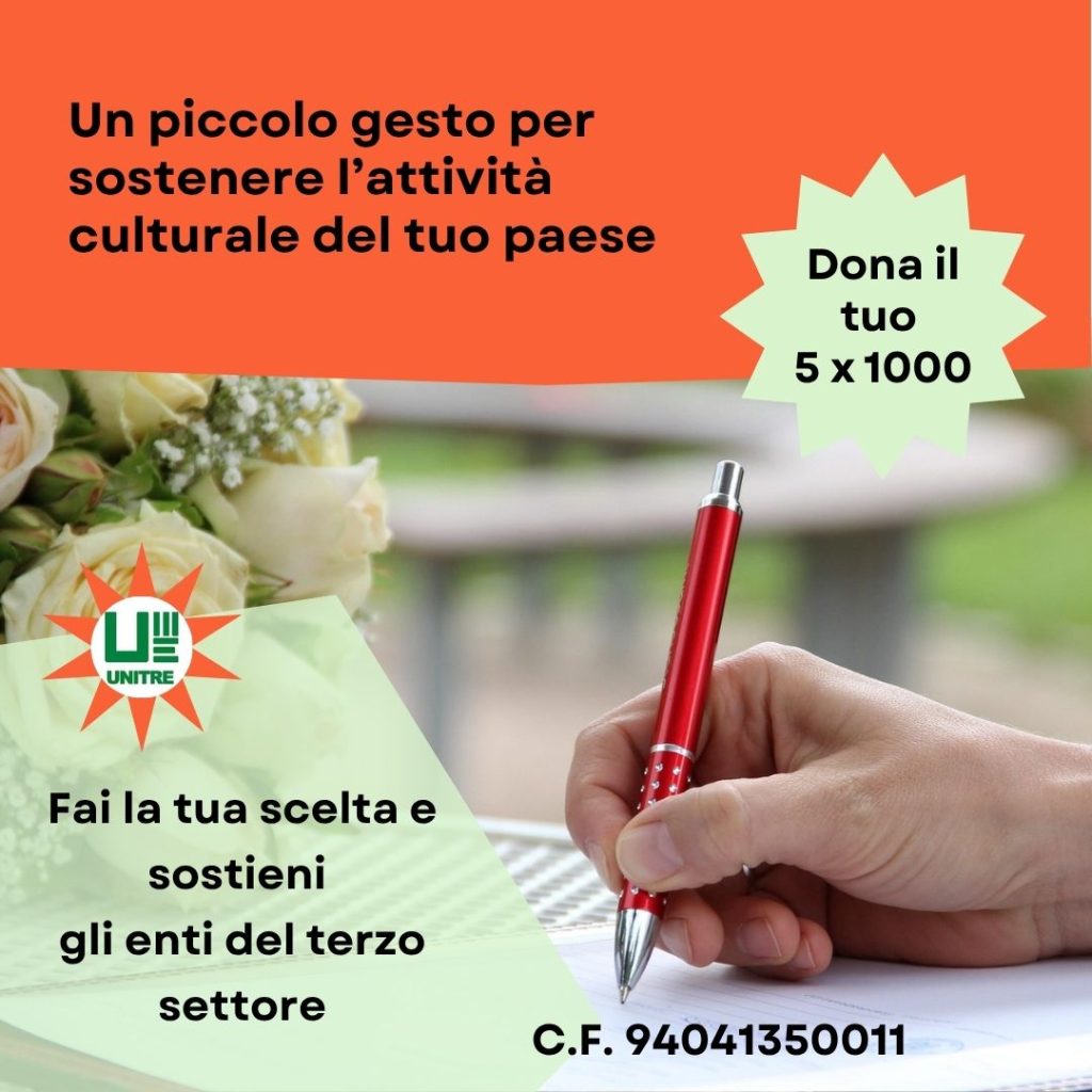 È possibile sostenere l’Unitre di Piobesi Torinese – associazione di promozione sociale che si basa sul volontariato, donando il 5 x 1000 dell’IRPEF nella prossima dichiarazione dei redditi, 730-Unico-CU.
