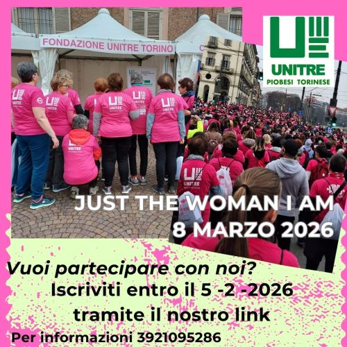 Anche quest’anno Unitre Piobesi Torinese parteciperà alla corsa camminata solidale JUST THE WOMAN I AM a sostegno della ricerca universitaria e alla diffusione della cultura della prevenzione, la manifestazione si snoderà per le vie di Torino l’8 marzo 2026, un appuntamento che riunisce migliaia di persone con un unico messaggio: la salute è per tutti!… Continua a leggere Unitre Piobesi ci sarà!